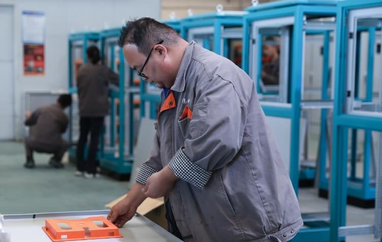 工業(yè)機(jī)柜即按電氣接線要求將開關(guān)設(shè)備、測(cè)量?jī)x表、電器和輔助設(shè)備組裝在機(jī)柜中,對(duì)生產(chǎn)過程實(shí)現(xiàn)控制,且具有保護(hù)存放設(shè)備、屏蔽電磁干擾等功能。